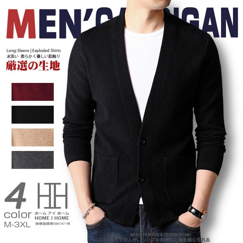ニット セーター カーディガン メンズ Vネック ビジネス対応 カジュアル お兄系 春秋 シンプル 日本メーカー新品